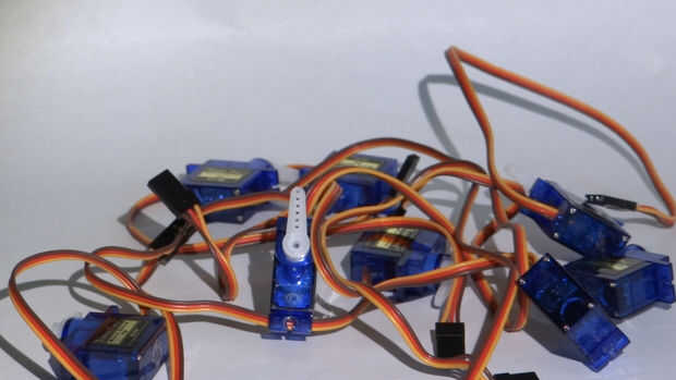 Para hacer este proyecto necesitas 8 micro servo motores, algunas piezas impresas 3D, tornillos, 3, 7V li-po batería y algunas partes para hacer PCB (atmega328 SMD 100nF condensador, condensador 470μF, resistencia 1, 2k, algunos goldpins). Si usted no tiene impresora 3D puede imprimir estas piezas por ejemplo aquí. Es muy importante hacer PCB para este proyecto ya que al conectar todo en protoboard la serpiente sería capaz de mover.