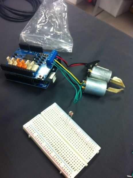 Para empezar, utilizamos motores de baja tensión con cinta en el extremo de cada eje para comprobar si nuestro código estaba trabajando o no. Al principio, es más importante que un prototipo de trabajo, que puede ampliarse a obtener un producto final. Los motores que utilizamos en este paso no eran los motores finales que hemos utilizado, pero trabajó la misma y nos permitió trabajar en el proyecto hasta que pudimos encontrar motores que mejor se adapta a nuestras necesidades.