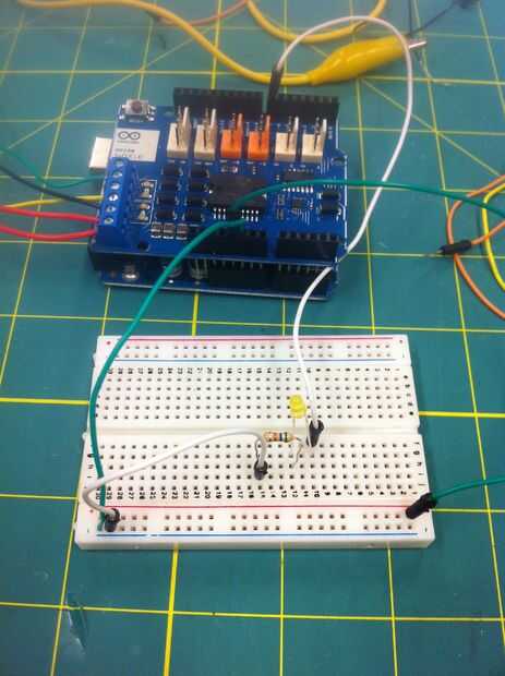 En este paso nos marquen un LED intermitente, similar a este tutorial instructable. Aunque este es un paso simple, podría ser útil obtener más información acerca de cómo funciona la configuración, como no vamos a través de puntos específicos en este paso.