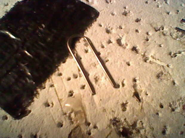 apartar el cuerpo durante un segundo y sacar los clips de papel. comenzar por desplegar al igual que en la segunda foto. luego con el alambre cortadores cortan el extremo más pequeño. después de eso tomar la gran final y corte cualquier extra hasta que tienen forma de u como en la foto tres. Luego corte el semi círculo parte de la u, hasta que tenga dos "piernas" del metal igual. repetir tres veces