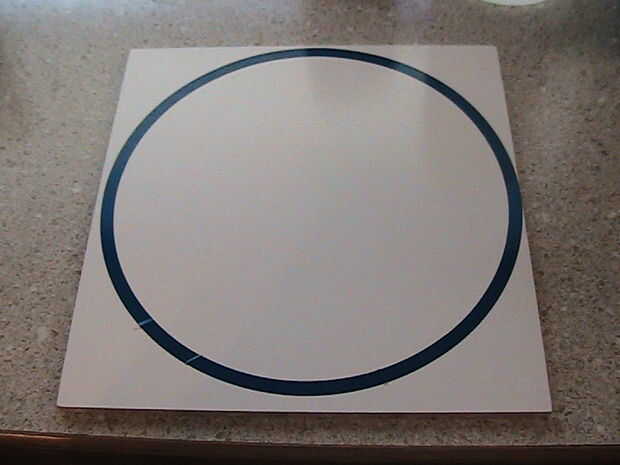 Aquí utilicé el cortador del vinilo de Techshop para hacer la máscara de "forma de anillo". Hice el archivo de entrada para el cortador del vinilo en Adobe Illustrator. Sin realmente saber muy bien el Illustrator, hice un círculo con diámetro cm 19,25 y entonces el círculo más pequeño de.625 cm del límite. Tengo las dimensiones de la Página Web de Robogames para Sumo. Mirar hacia fuera. Restan.625 de 19.25 y consiguió la respuesta equivocada y pierde mucho tiempo. El diámetro del círculo interno debe ser 19.25 -.625 -.625 = 18 cm.
