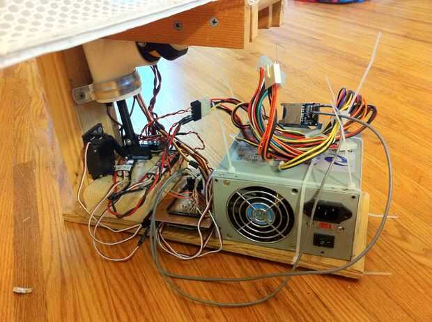 Después mirando a su alrededor en un montón de robots de tenis de mesa por ahí para ayudarme a practicar, me decidí a hacerlo un divertido proyecto con mi esposa para construir uno de los nuestros propios con un conjunto de características que era similar o mejor que lo que ya estaba hacia fuera allí. Ha sido un ciclo de desarrollo largo encendido y apagado, pero por fin está a punto de ser utilizable. Utiliza un lanzador de bola de doble rueda con servos vertical, horizontales y rotatorios. Actualmente es controlado por un microcontrolador Arduino Mega 2560, pero tengo planes de cambiar esto a un Teensy 2.0. Taladros son creados en un PC mediante una aplicación Java simple y luego se guardan en una tarjeta SD. El Arduino muestra ejercicios disponibles en una interfaz de pantalla LCD y un TV estándar remoto se utiliza para seleccionar el taladro y start/stop, lo. Energía es proporcionada por una estándar ATX computadoras fuente de alimentación (5V y 12V).