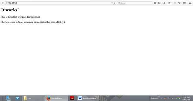 Si ahora inicie un navegador web en su computadora y escriba la dirección IP de tu IP en la barra de direcciones, verá un mensaje que dice algo como"su sitio de Internet trabajo/marcha!".