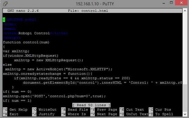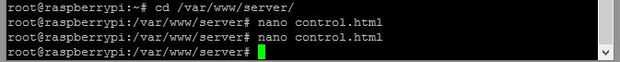 A continuación que tienes que editar una línea en el archivo control.html. Usar nano para hacer esto:
