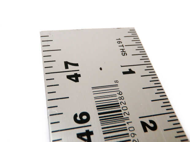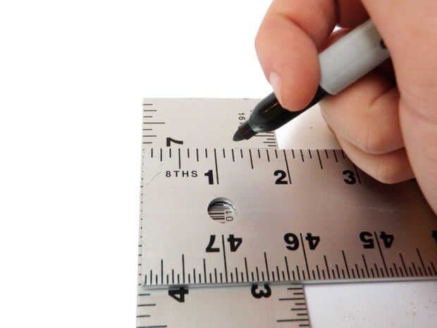 Una pulgada desde el borde de cada uno de los lados lejos de la regla, trace una marca de centrado.