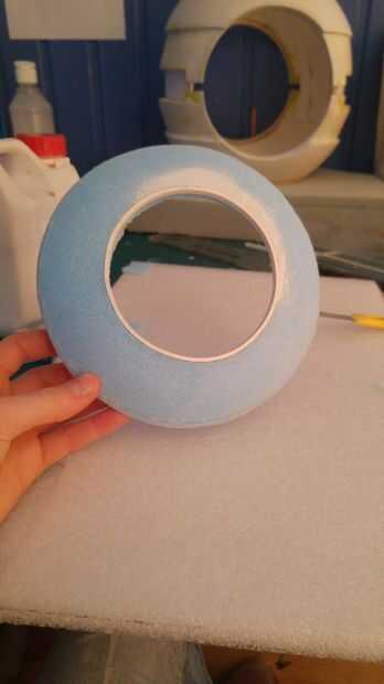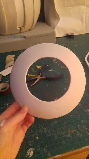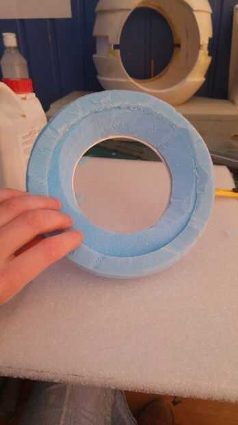 Talló la placa ojo de espuma azul. Utilicé tiras de PVC espumado y que encajen en el interior del círculo y en el exterior que me diera un borde más fuerte, también ayudó a lograr un mejor círculo.