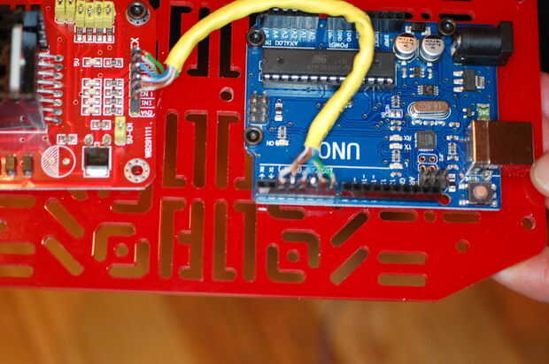 1. Conecte el extremo hembra a los conductores del motor a los pines de entrada a partir de (ENA) y asegúrese de que el otro extremo (extremos macho) partidos al pin digital 2 en el microcontrolador.