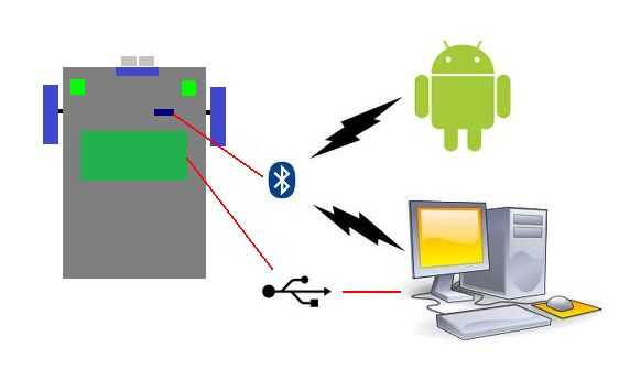 Inicialmente, vamos a utilizar una conexión USB entre el tablero de inicio rápido en el robot a robot de alimentación durante la prueba (por USB) y cargar los programas de prueba inicial con hélice. Después de la prueba de los programas de trabajo, utilizaremos la herramienta hélice a instalar BASIC que nos permitirá desconectar el cable USB e interactuar con el robot de forma inalámbrica desde un terminal serial de cualquiera un Bluetooth PC o Android dispositivo. Usted será capaz de interactuar con el robot desde su escritorio sin tener que enchufarlo en el ordenador para programar. (Un buen programa terminal, Terminal Serial Parallax viene con la instalación del software herramienta de hélice).