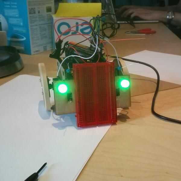 esto es, como dice el titulo, una plataforma robótica basada en Arduino, con su propia biblioteca. El modelo "estándar" viene con dos motores traseros, dos ruedas de omni en la parte delantera, y un sensor de distancia montado en la parte delant