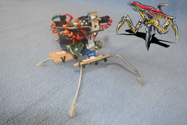 Se llamaba Kleerhangerbeest, que es holandés para "animal coat-hanger", en honor de la Strandbeests, robots impulsada por el viento de la playa del creador holandés Theo Jansen. La versión de Scratch fue desarrollada para permitir que niños incluso preadolescentes a programa sin esfuerzo. Tiene la ventaja adicional de que, al controlar el robot con el entorno de programación visual de cero en una PC o Raspberry Pi, es posible desarrollar programación Arduino multi-threaded y cambiar el programa a la carrera, sin necesidad de recompilar y cargar un programa basado en el firmware. Este enfoque simple de construir, junto con el cero basado en programación, hace especialmente interesante para la enseñanza de robótica a los niños, permitiendo a los niños a experimentar con modos distintos andares dinámicamente y explorar el comportamiento del robot mediante una fácil herramienta de programación que permite para ver inmediatamente los resultados de un cambio de programa.