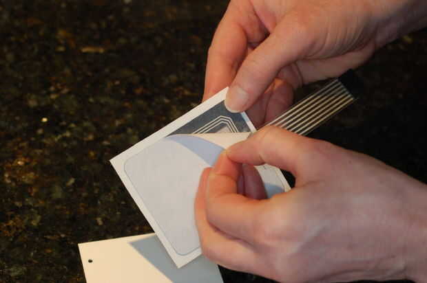 4. Voltear el teclado. Uso de las marcas como guía, perfore agujeros a través del teclado utilizando un punzón.