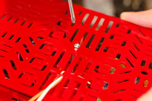 1. Introduzca los cables del motor a través del centro del chasis superior.