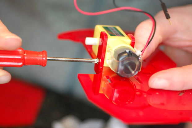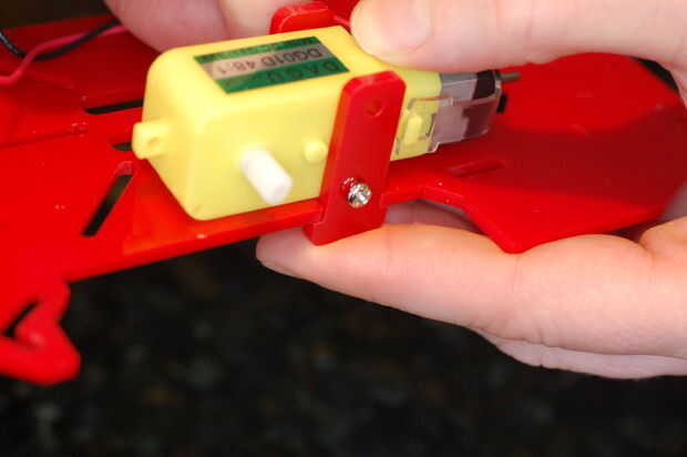 4. Vuelva y repita los pasos 1 a 3 para el otro motor. Otra vez Asegúrese de que el quid es hacia el exterior del chasis.