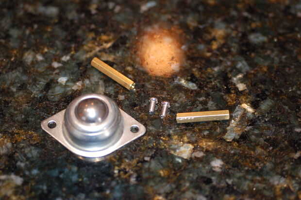 1. Fije la rueda de Omni con dos espaciadores de L25 y dos M3 * 6 tornillos con los dedos. Apriete con el destornillador.