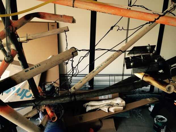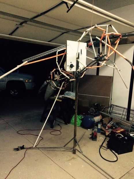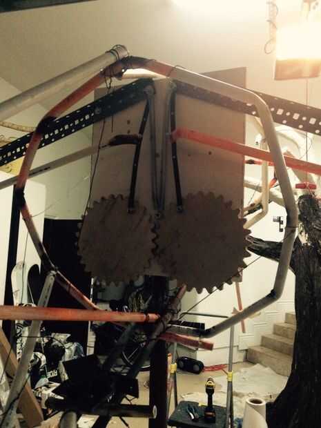 Después de que el bastidor está construido en su mayor parte, moví a todo lo que hace mover. Esto incluyó el pico neumáticamente controlado. Los ojos de LED. El cuello que da vuelta. Las alas de doble articulación y la oscilación de la cola. Sé que esto no se ve muy estético, ni es trabajo orgullosa pero estaba presionado por el tiempo al hacer este Cuervo así que corte como muchos rincones como pude. Cuando instale el cilindro, motores y LED Asegúrese de ejecutar a todos sus cables y la tubería hasta el suelo.