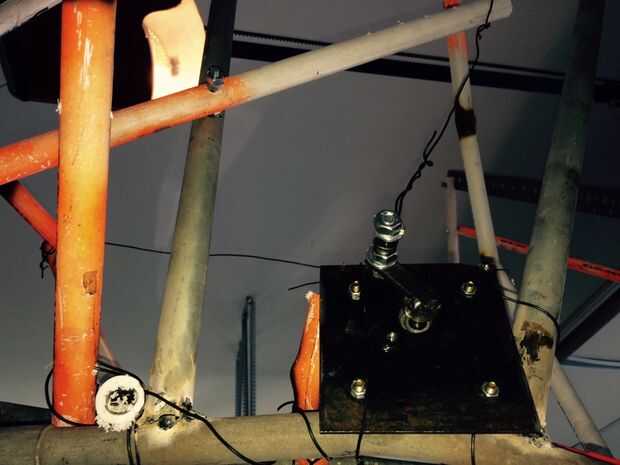 3. oscilante cuello: quería el cuello para mover para configurar un motor de 12v simple (6 RPM) con una simple manivela. Os adjunto un segmento de alambre de metal en el extremo de la manivela y el otro extremo a un lado del cuello. Esto fue muy sutil movimiento pero funcionó.
