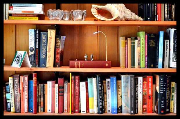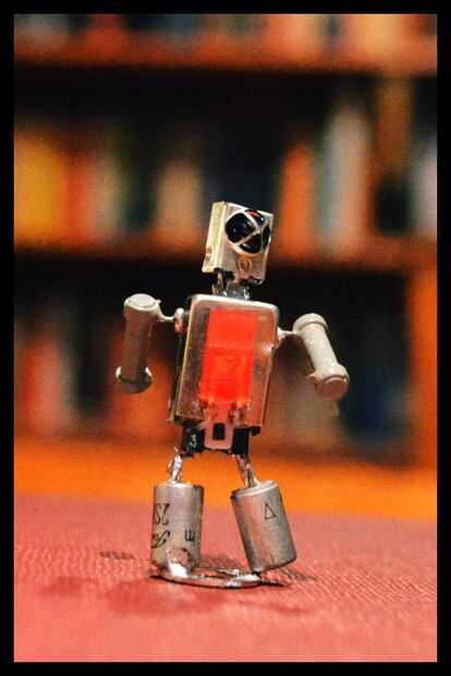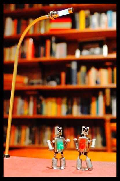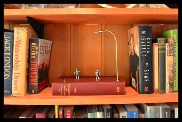 Elegí un libro que los robots bailando sobre como quería que parece que los robots casualmente se está visualizando en la parte superior del libro. Usted podría utilizar una caja de madera (o caja de cartón) para ocultar el motor etc, pero un libro hace el trabajo bastante bien.