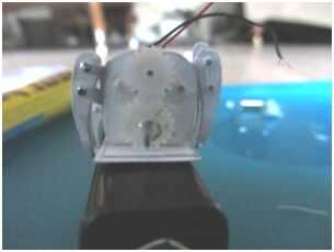 luego coloque el eje motor en el orificio en la parte superior de la placa central cortando una franja. Ahora usted puede pegar la mayor parte del motor en la placa de montaje del motor. Asegúrese de que los dientes están interconectadas antes que todo palo abajo.