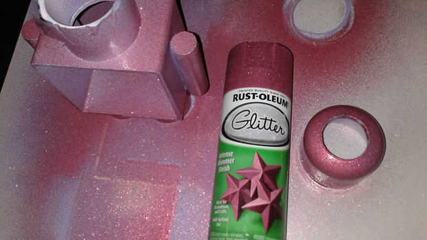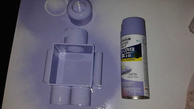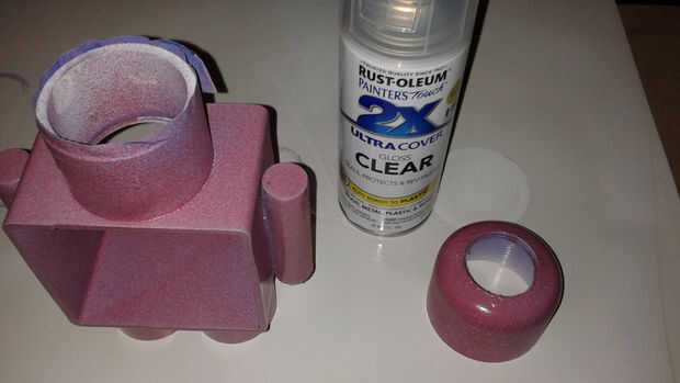 Me dio el robot un ligero lijado y pegado al cuello donde contacto con la cabeza. Dio el robot una capa uniforme de pintura en aerosol de Rustoleum lila en el cuerpo y la cabeza. Cuando se seca que le di varias capas de pintura de brillo rosa Rustoleum. Remata con una capa uniforme de capa clara. Anuló el robot pintado seco durante la noche.