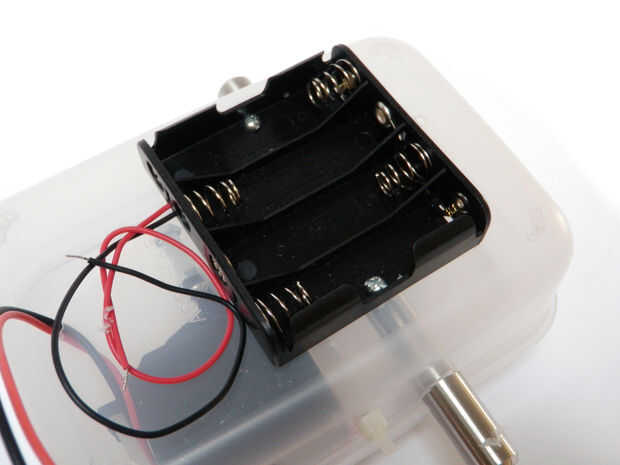 Fije el soporte de la batería en el exterior del envase de plástico con 4-40 x 1/4" y tuercas.
