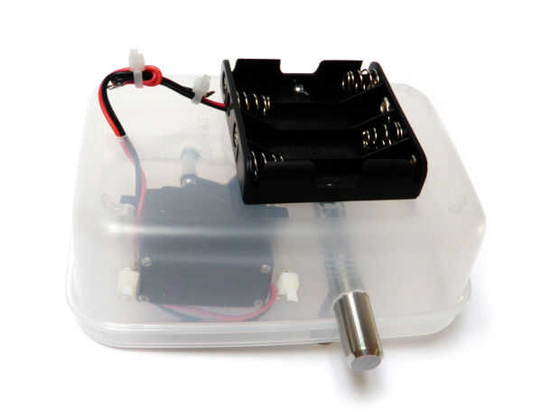 construir un pequeño robot programable mediante láser cortar acrílico para plataformas, cajas de juguetes y motores, un puñado de hardware y un sello de Junta de educación básica.  El robot puede ser programado para mover remite, al revés, gira a der