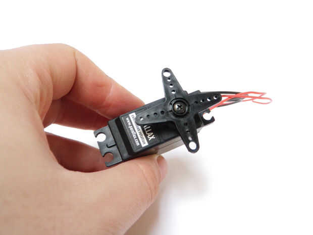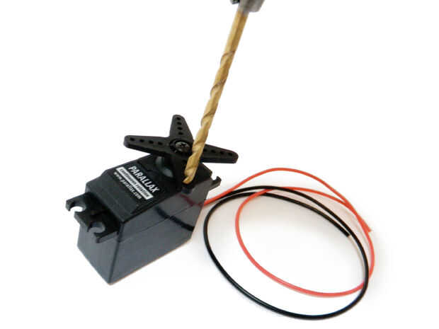 Perforar dos 1/8" frente a la otra en el cuerno del servo.