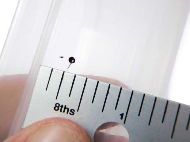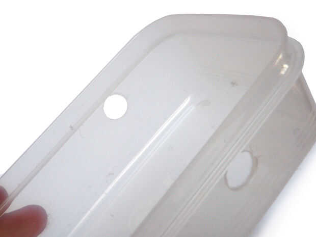 Hacer una marca idéntica en el lado opuesto del recipiente plástico.