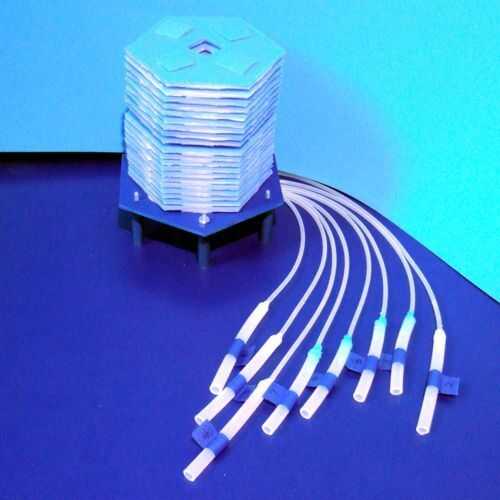 Foto 3 muestra veinte todos los segmentos de la parte superior del brazo y antebrazo apilados y pegado y las líneas de corriente de aire. Una placa de plástico de 1/16" más tarde fue pegada en la parte superior con tornillos salientes que permiten diferentes pinzas atornillar en.