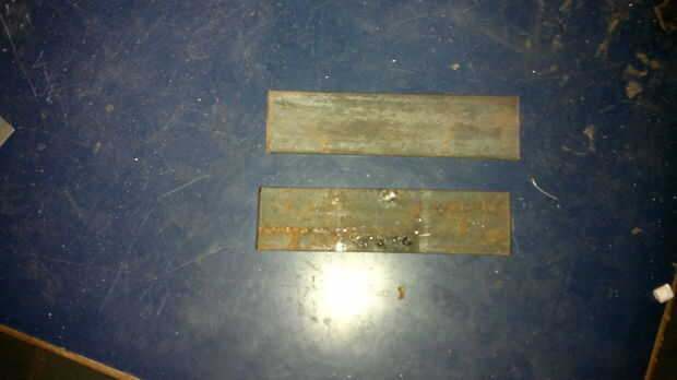 nowwe tomar 2 tiras de M.S. unos 5 cm de largo y soldar en tira larga de 50cm como se muestra en la figura.