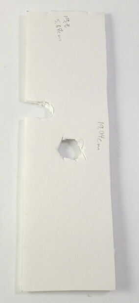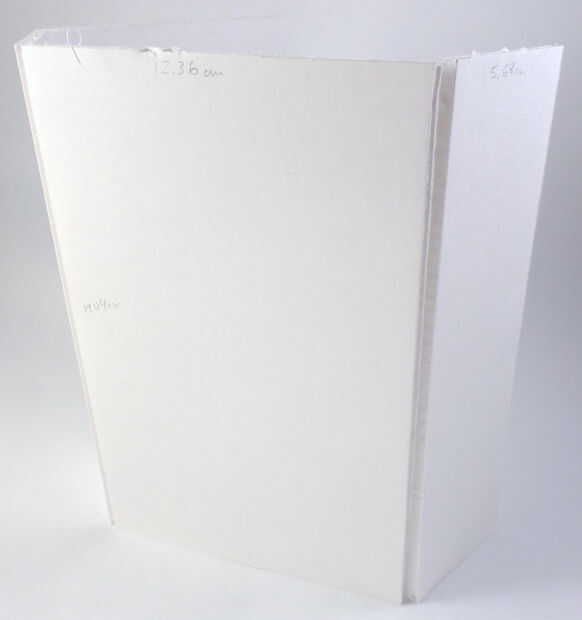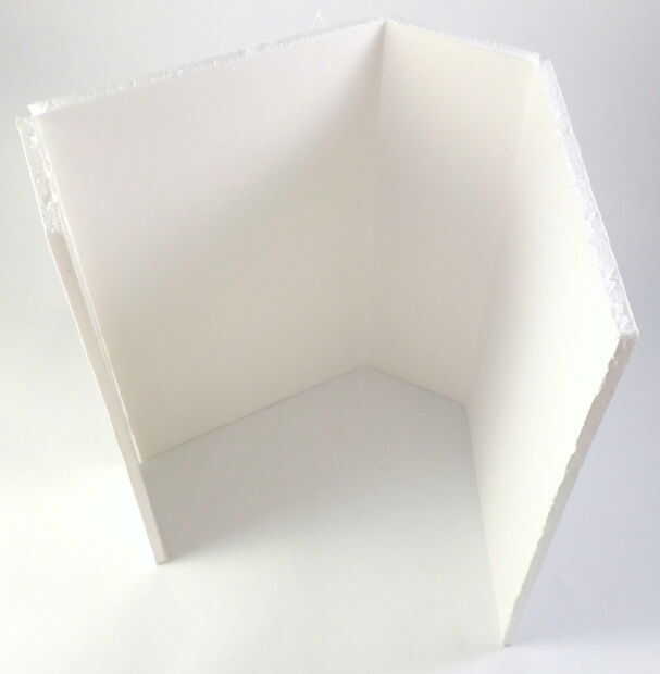 Corte un pedazo de tablero de la espuma 36,08 cm de largo y 19,04 cm de altura. Use un lápiz para marcar las líneas verticales que dividen la pieza altura cm 19,04 en cuatro segmentos que tienen las siguientes longitudes, en este orden: 12,36 cm 5,68 cm, 12,36 cm y luego 5,68 cm. Ver las fotos para más detalles. Utilizar el cuchillo para cortar a través de una sola capa del tablero de la espuma en la línea marcada a lápiz y luego doblarlas hacia atrás. Debe formar un marco rectangular alto, flaco, como se muestra en las fotos. (No se cerró en un marco rectangular de la cinta).