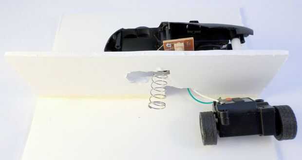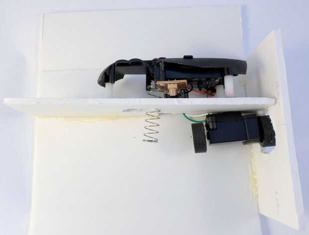 Una vez que estés feliz con la posición del ratón RC desmontado y sus ruedas, caliente de pegamento la pieza de Junta de espuma de 19,04 x 5,68 cm en su lugar en el marco rectangular. Ver las fotos de lo que esto se debe ver como.