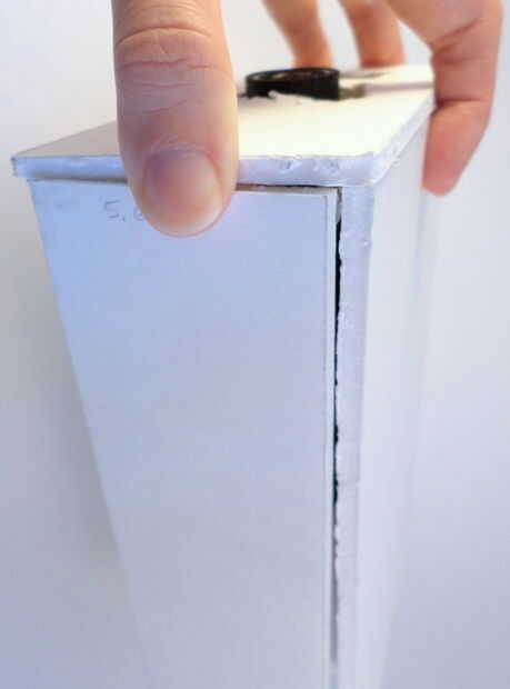 Antes de que se pegue la tapa frontal cerrada, asegúrese de marcar la posición de la rueda en la parte superior de la pieza de Junta de espuma superior. Para ello, alinee la rueda para que el pin de seguridad es 180 grados desde el alfiler y luego marque la rueda superior y donde alinea en la pieza de Junta de espuma superior – ver las fotos para más detalles. Esto es para que sepas cómo se debe girar la rueda al poner la cabeza arriba de él.