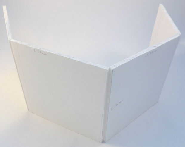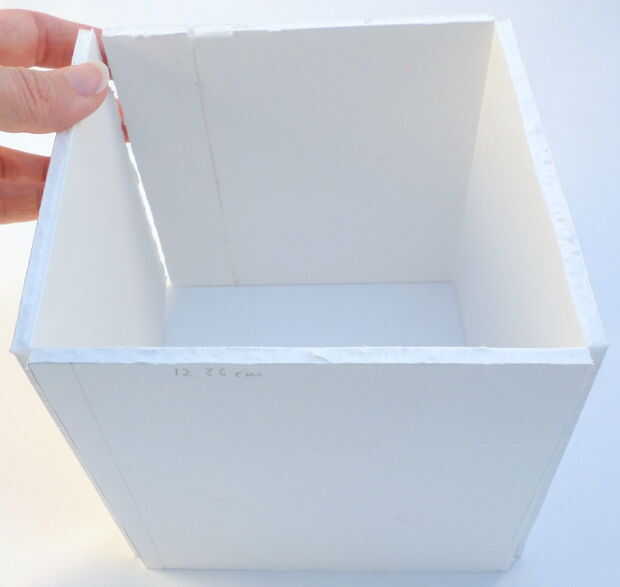 Corte un pedazo de tablero de la espuma 49,44 cm de largo y 12,36 cm de altura. Use un lápiz para marcar las líneas verticales que dividen la pieza de 12,36 cm altura en cuatro segmentos de igual tamaño (si todos terminan siendo cm 12,36 12,36 cm). Utilizar el cuchillo para cortar a través de una sola capa del tablero de la espuma en la línea marcada a lápiz y luego doblarlas hacia atrás. Debe formar un marco de cubo. Ver las fotos para más detalles. (No cinta cerró sin embargo en un marco de cubo).