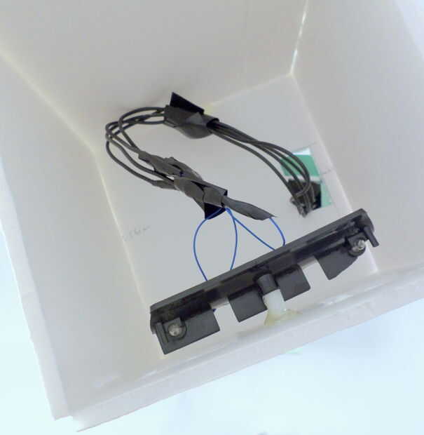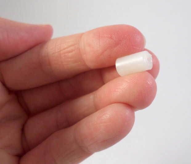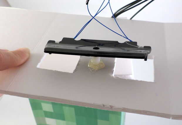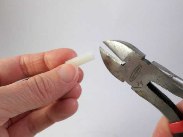 A continuación utilice pegamento caliente para fijar el separador de plástico medio cuerpo a la marca hecha entre los ojos (en el interior de la cabeza). No escatimes en el pegamento!