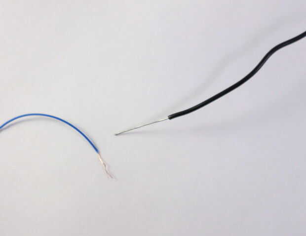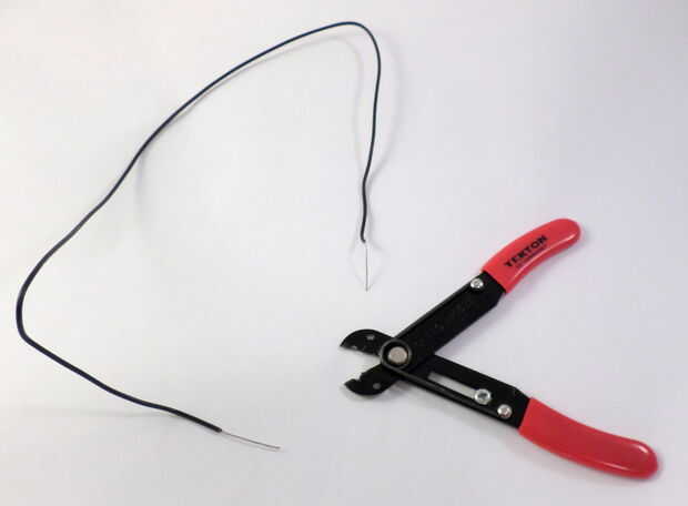 Tomar el alambre aislado y cortar cuatro piezas, cada uno de aproximadamente 55 cm de largo. (Estos cables necesitan ser lo suficientemente largos para hacer que las luces del coche RC desmontada alcanza cabeza del bot de la enredadera). Franja de unos 2-3 cm de ambos extremos de cada cable.