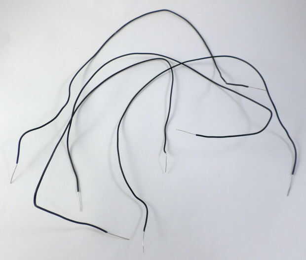 Repetir este proceso con los otros tres cables azul por lo que son todos igualmente alargados. Luego añadir alguna cinta aislante alrededor de los cuatro de los cables para ayudar a mantenerlos juntos (esto hará más difícil para obtener de la placa de circuito). Cuando haya terminado, trate de encender las linternas para asegurarse de que todavía funcionan!