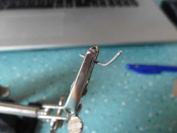 Si desea que puede utilizar un poco de exceso de alambre hacer un gancho (en la tercera mano) se puede iniciar su cadena de entonces y tener ambas manos libres.