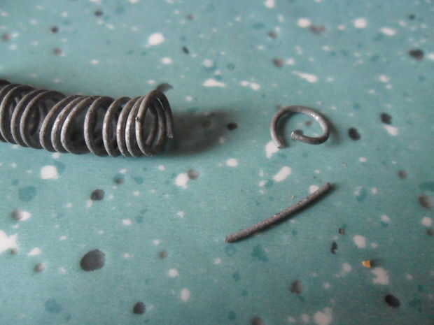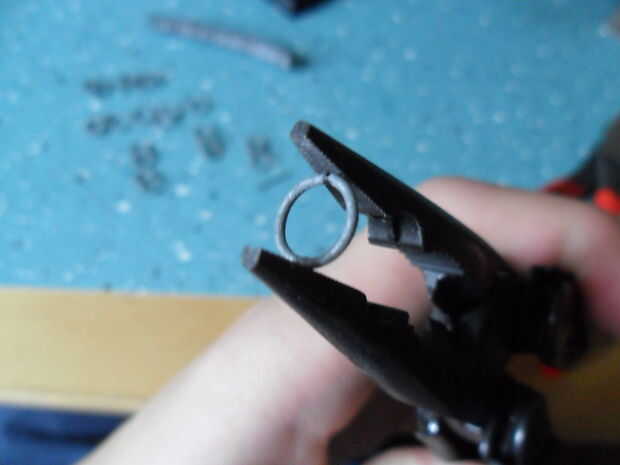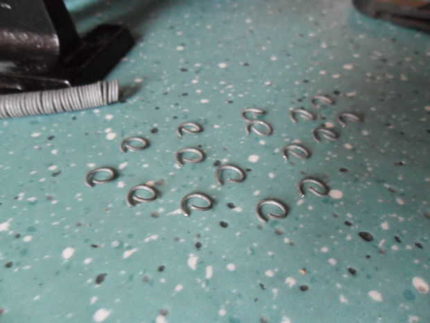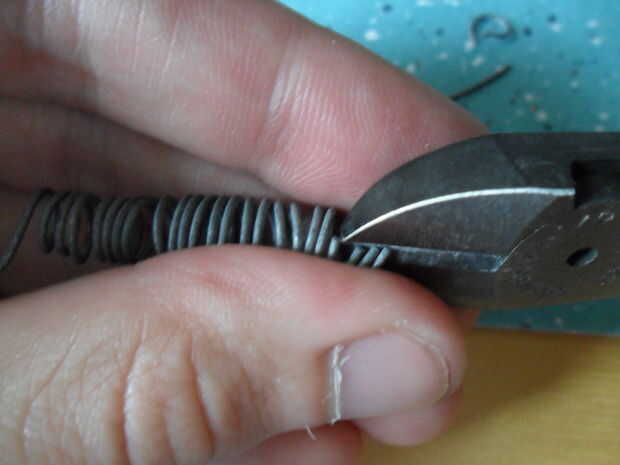 Os aconsejo que después de haber hecho 1 bobina, para cortar y abrir. De esta manera te aburrirás menos, y sus manos ganará algo de fuerza hacia atrás. A veces puede ser dolorosa flexión toneladas de anillos con las manos. (sólo se utilizan herramientas de anillos más grandes)