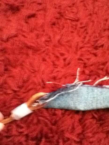 Ahora ate la cuerda en los agujeros. Nota: he usado cuerdas de becerro no se recomendaría cus es difícil