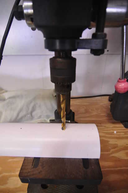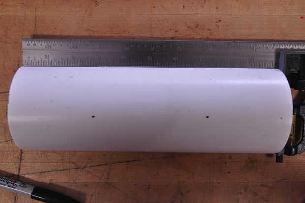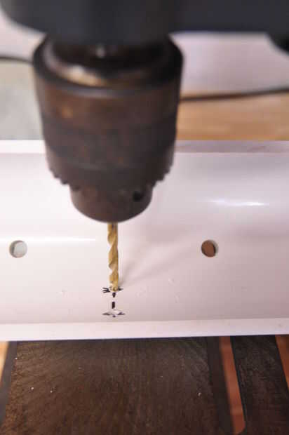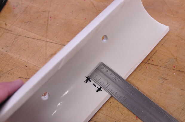 Ahora perfore dos agujeros de montaje de 3/16 de pulgada en el centro de izquierda a derecha, 1/2 pulgadas desde el borde y el segundo 1-1/4 pulgadas desde el borde mismo.