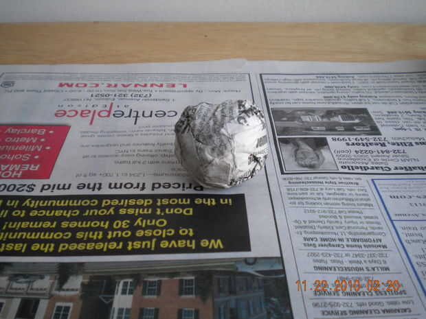 Copiar una página de tamaño completa en láminas de 1/4. Aplique pegamento en un lado y meterse en una bola apretada. Use suficiente pegamento para que el periódico está húmedo pero no goteando. ¿(Demasiado pegamento? Sólo abrigo otra hoja seca alrededor de la bola). Repita este paso hasta que haya acumulado un 1-1/2" diámetro de la base; se necesitan de cuatro a cinco hojas.