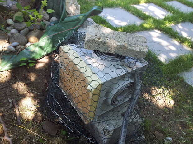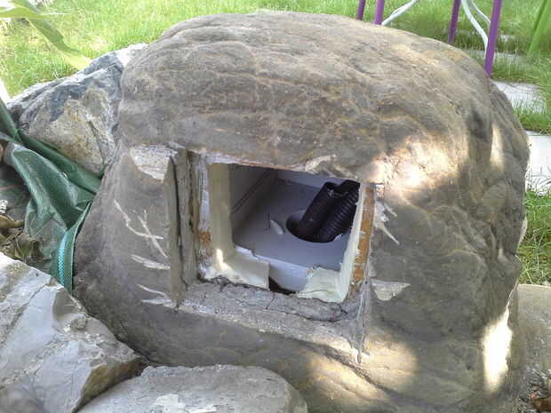 Si hacer una caja eléctrica o iluminación piedra usted tiene algunas opciones después de haber hecho un espacio dentro de la forma, envases de plástico trabajo bien incluso un revés de cubo o tambor obras, pase el cable de fuente eléctrica para arriba en esta cavidad y se pueden enviar condiuts vacío al poder exterior característica tales como luces y fuentes. Recuerde que la abertura de acceso debe ser cóncava para que la puerta se puede quitar. Aquí hay 2 formas de hacer la puerta.
