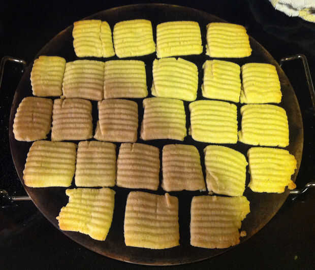 Cargar su masa para galletas en la prensa de galletas o ruede hacia fuera. prensa/cortar las galletas en el horno piedra/un-greased galletas y les cuece al horno en el horno durante 13 minutos. Sacar del horno y dejan enfriar en la piedra de la hornada / hoja de cookie para unos 10-15 minutos.