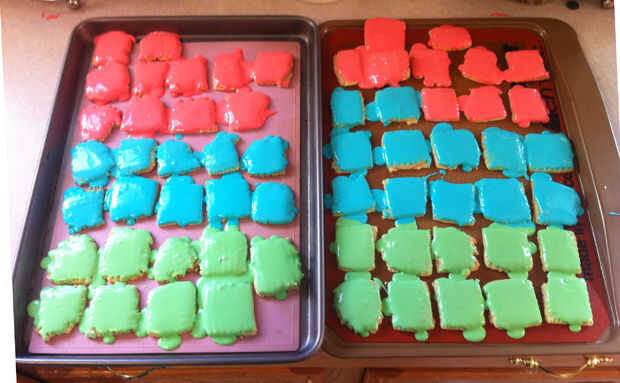 Éstos trabajan perfecto para platos de galletas de Navidad o para las partes en general.  Lo bueno de ellos es sólo tienes que hacer un tipo de galletas pero si haces varios colores de glaseado real se ve como una gran variedad de galletas cuando está en un plato.