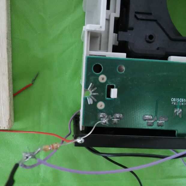 Para obtener acceso al control de la bandeja soldar 3 cables para el límite y pulsador interruptor canal kohm tres 10 resistencias pull-up que dirija a los pines de arduino, 8, 9 y 10. Puedes ver el diagrama de cableado en las fotos.
