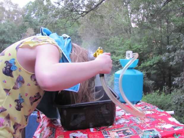 Paso 6: Haz tu estufa de campamento, Cuenca y 'Bug rociador' y disfruta de lavarse el cabello!