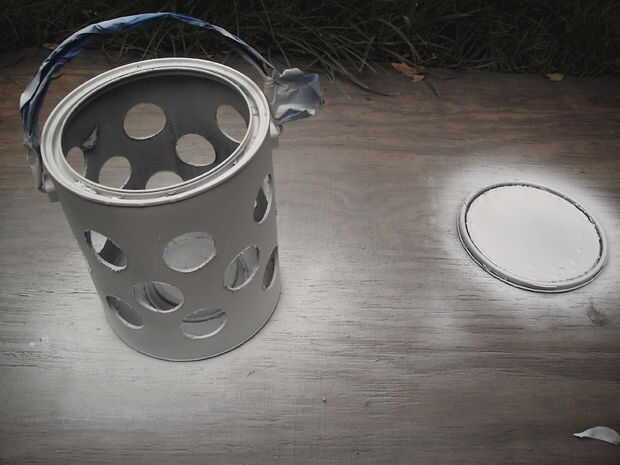 El cubo de la pintura blanca le permitirán reflejar la luz y evitar calentar el cubo. Ya que mi cubo es de plástico, usé Krylon Fusionde plástico. Recogido de blanco, pero ahora creo que brillo blanco sería lo mejor. Asegúrese de que el mango de la mascarilla por lo que permanece brillante.