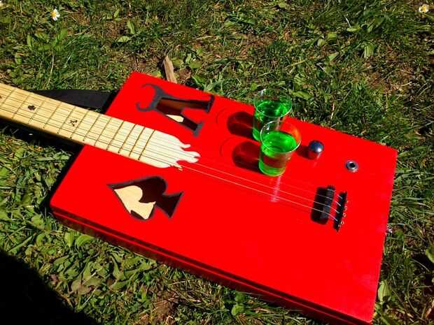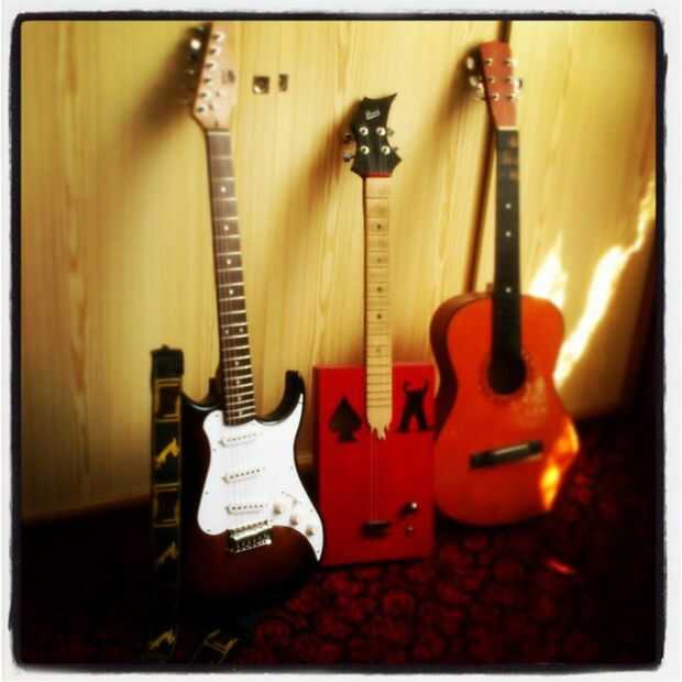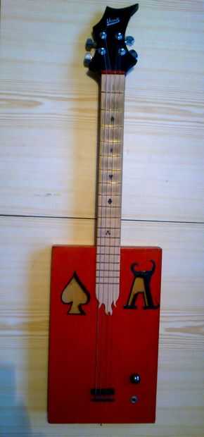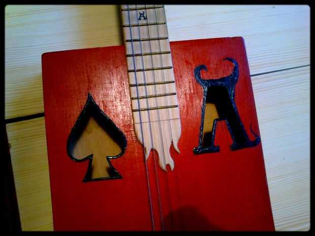 Conocí a guitarras de caja de cigarros en youtube y sólo caí en amor con ese diseño y sonido. A pesar de no podía encontrar cualquier cajas de cigarros en mi zona he utilizado alguna caja de madera ordinaria. Pero en mi opinión es todavía fresco :)