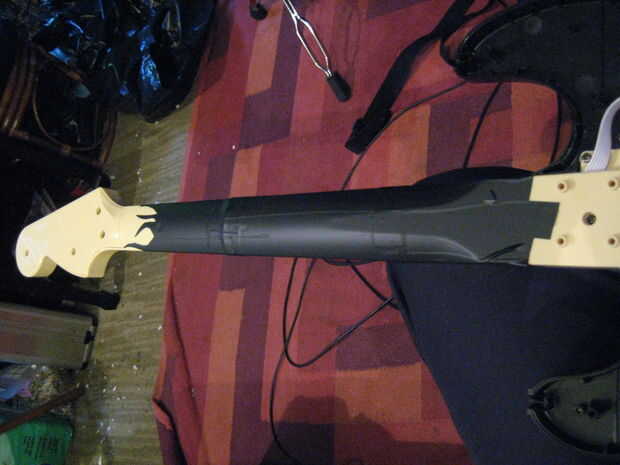 Luego cubrir las brechas en el cuello de la guitarra con cinta adicional.