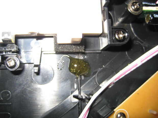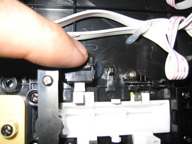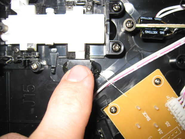 Tomar sus interruptores PS2 Gibson SG rasgueo mecánica, que se quitaron anteriormente, y les plunk abajo en el plástico.